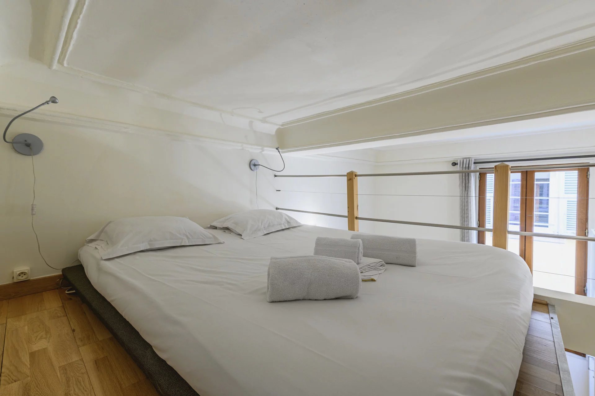 Le studio bénéficie d'une belle hauteur sous plafond. Il y a la possibilité de souscrire à la fibre optique dans l'appartement.